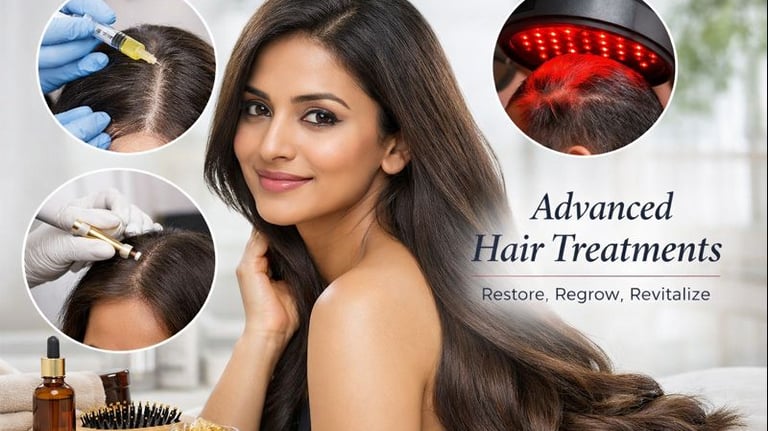 We offer Hair Fall Control and Regrowth Support through medically planned options such as Hair PRP, Mesotherapy, and targeted growth support therapies that strengthen follicles and improve scalp nourishment. For people who are noticing thinning, widening parting, or a receding hairline, our treatments focus on stabilising loss first and then supporting visible improvement over time.